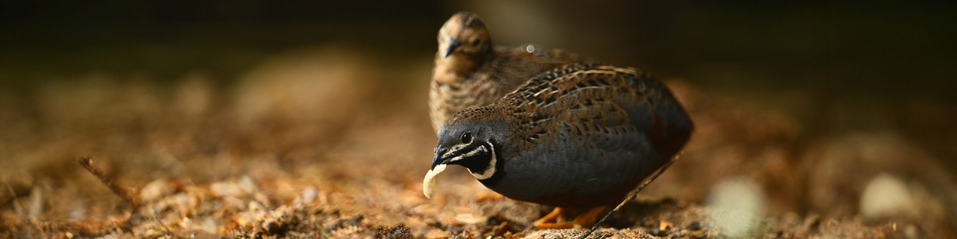 Button quails are very active on the ground. Leaf litter and sand baths invite them to scratch and browse.