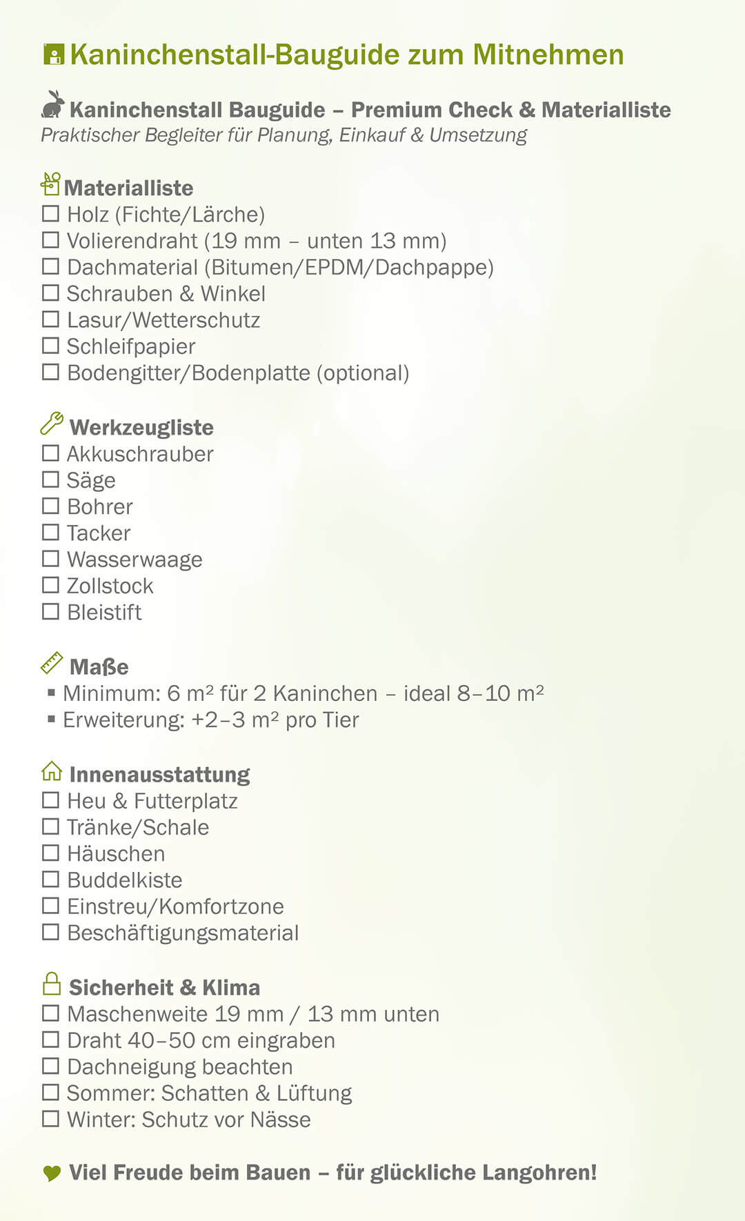 Conclusion: Checklist for a species-appropriate rabbit hutch with enclosure