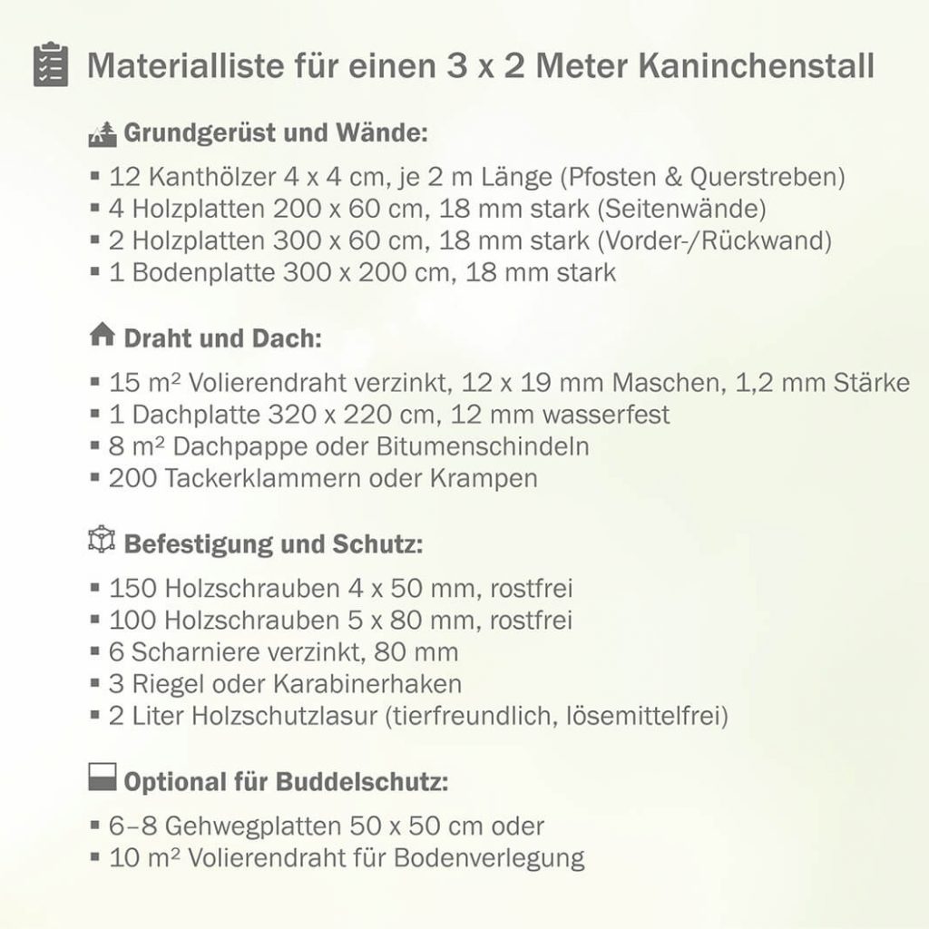 Now it’s getting practical! With a clear plan, robust material and some time, you can build a hutch that fits your long-eared friends exactly. Before you turn the first screw, it is worth defining the dimensions, location and functions. Where does the feeding place go? How do you reach the sleeping area for cleaning? Think first, then saw – this will avoid later conversions. In the next step, you will receive a compact tool, foundation and construction manual.