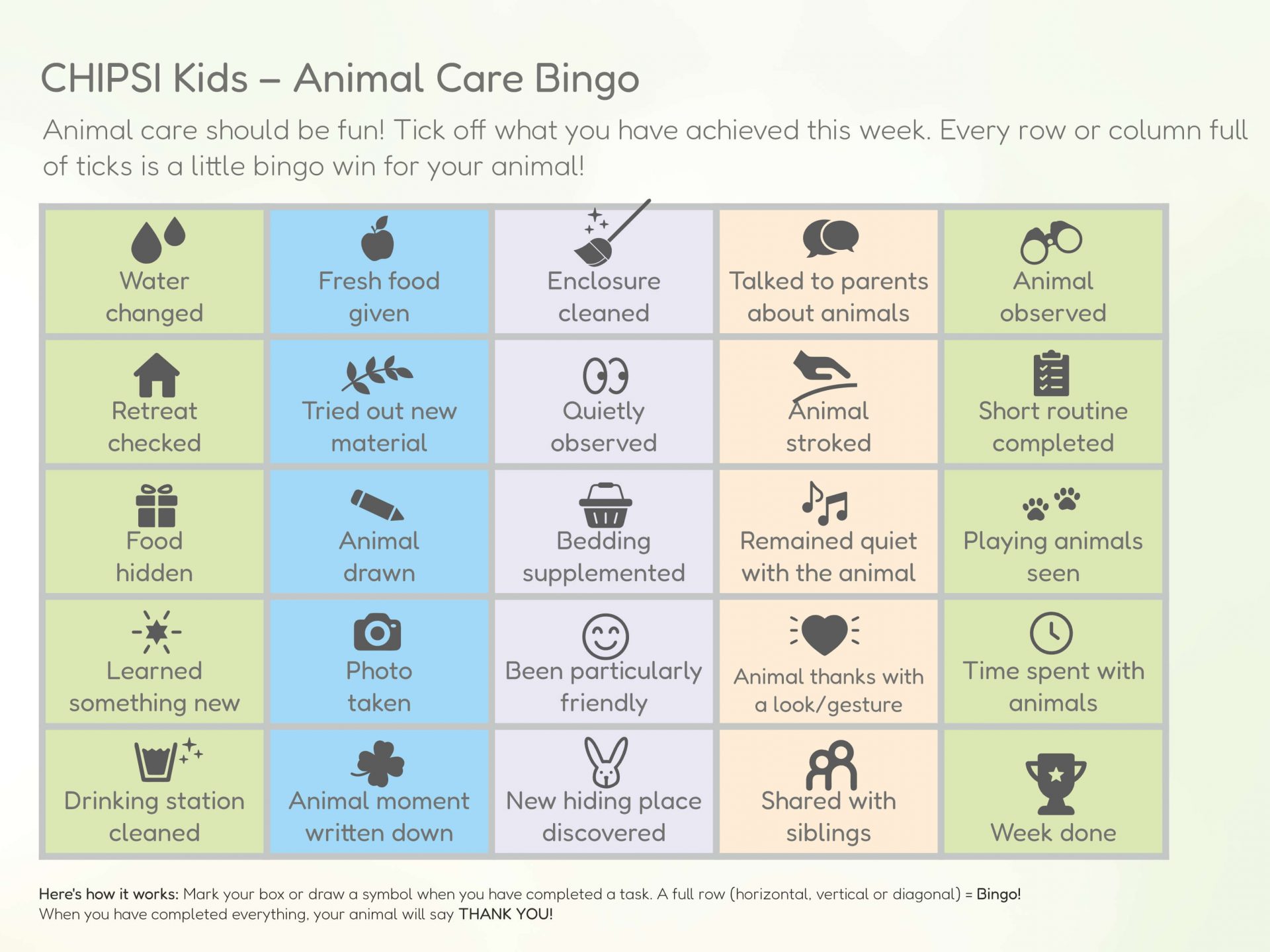 CHIPSI Kids – Pet Care Bingo 🐹💧🍎